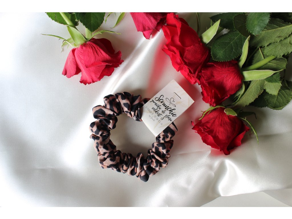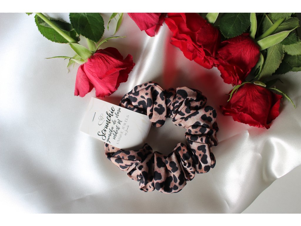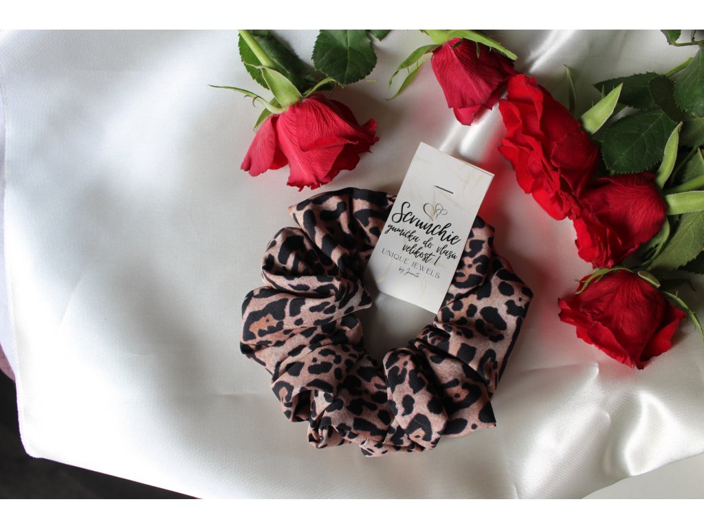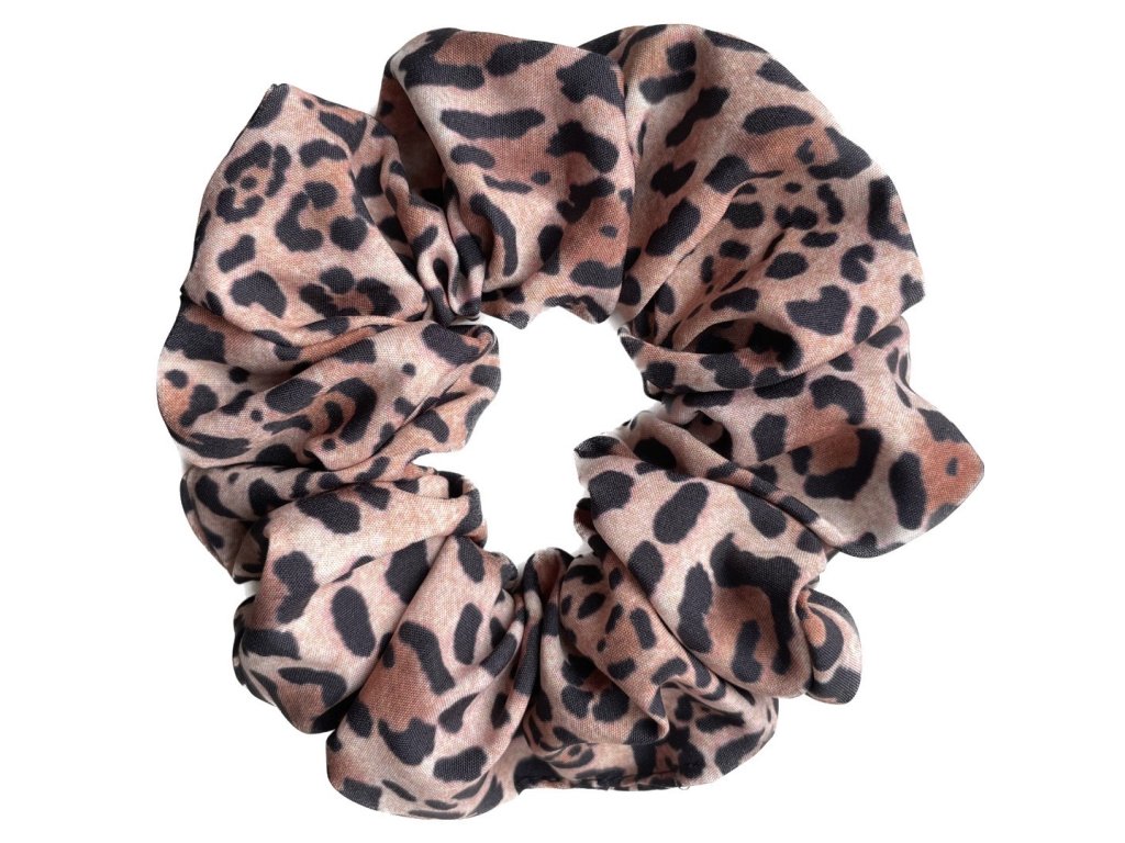 Scrunchie gumička z umělého hedvábí s nesmrtelným zvířecím vzorem Leopard!