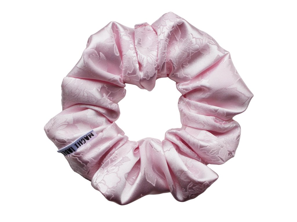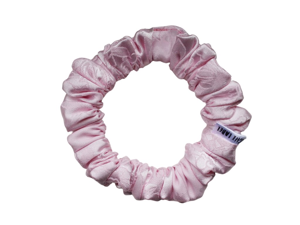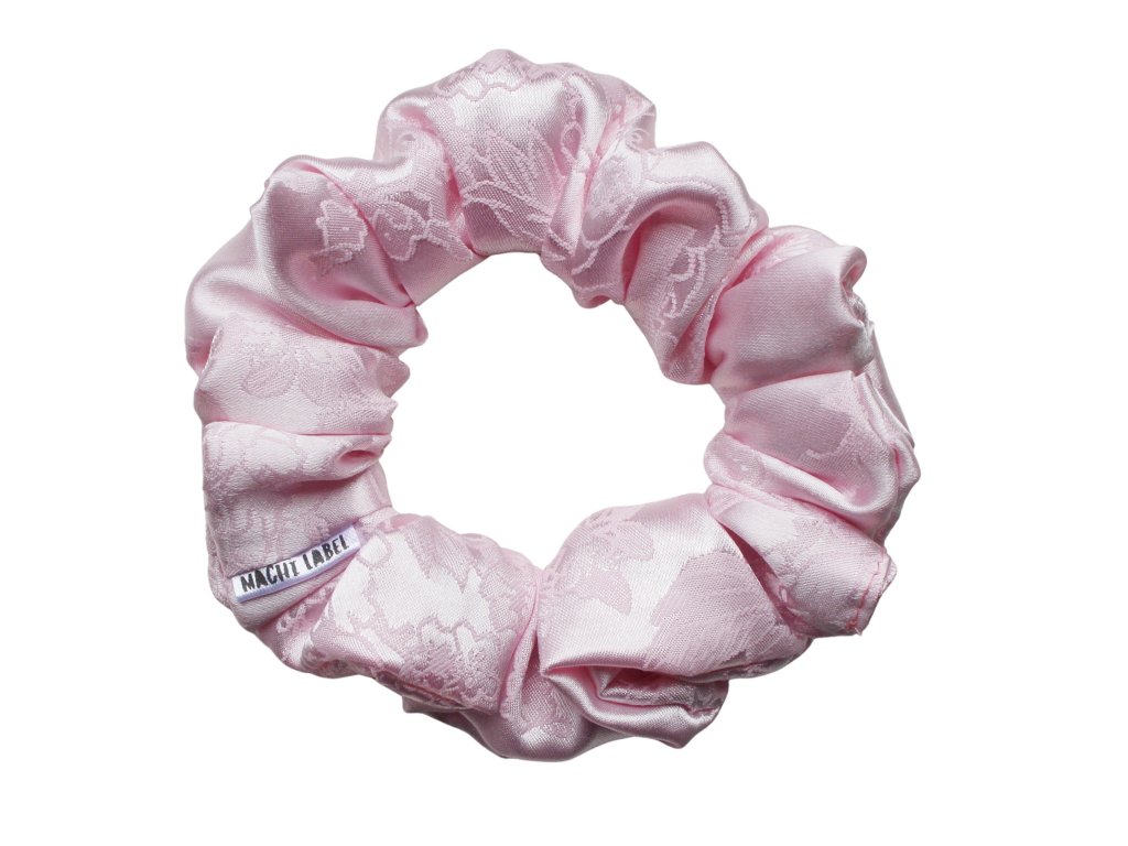 Saténová scrunchie gumička Blush Petal v jemně růžovém odstínu. Ručně šitá, šetrná k vlasům a ideální jako stylový doplněk pro každodenní nošení.