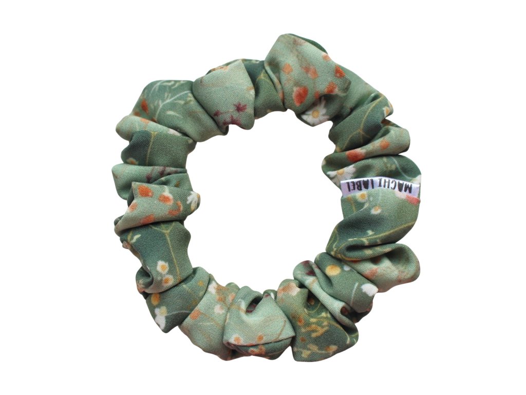 Saténová scrunchie Louka - svěžest přírody ve vašich vlasech