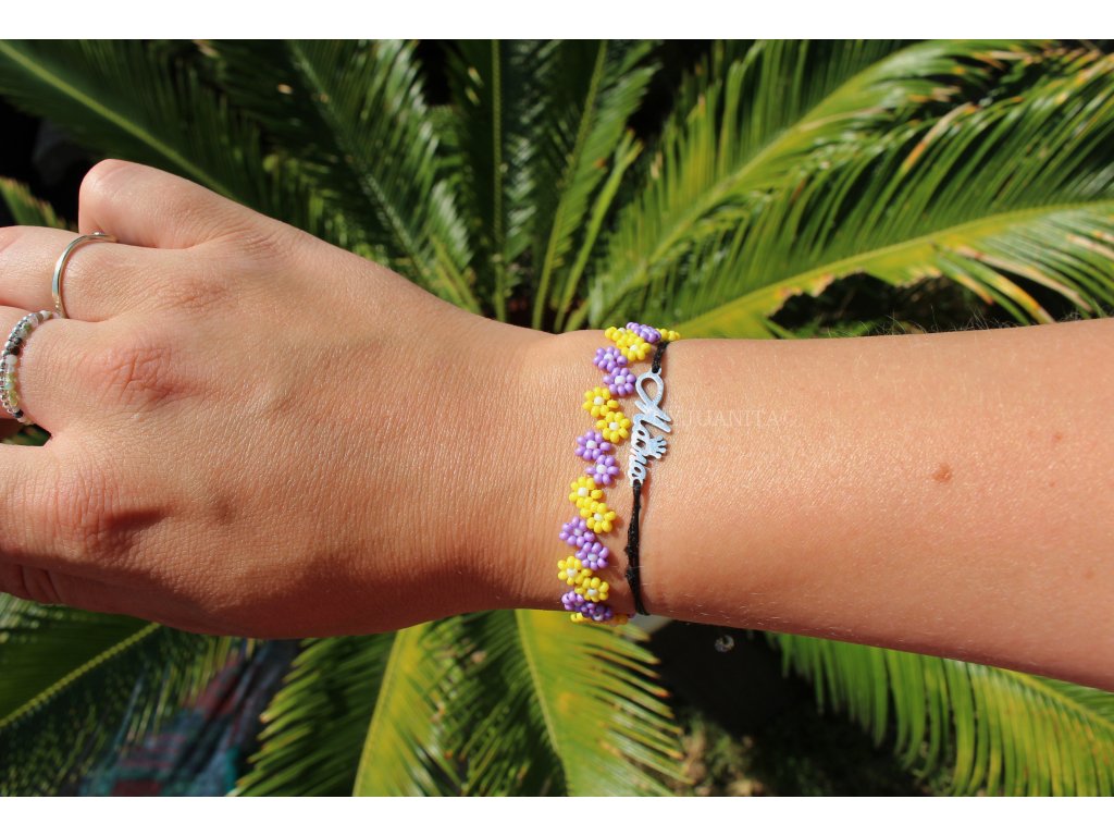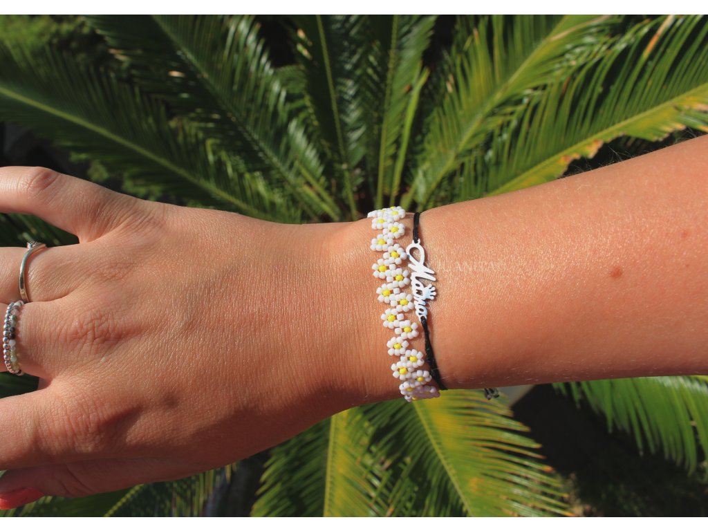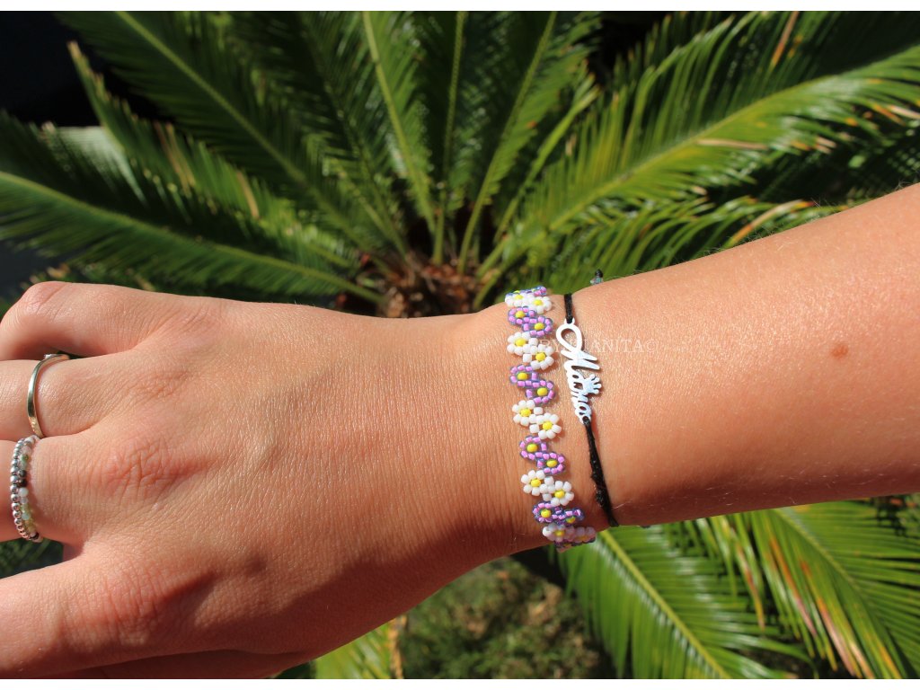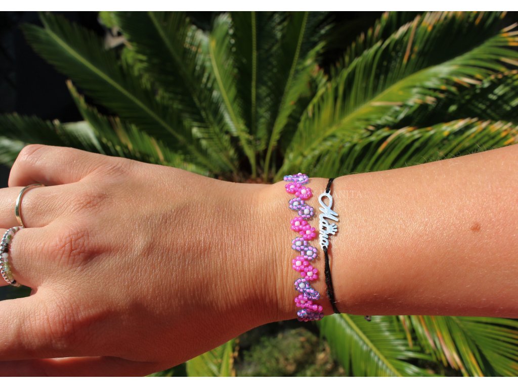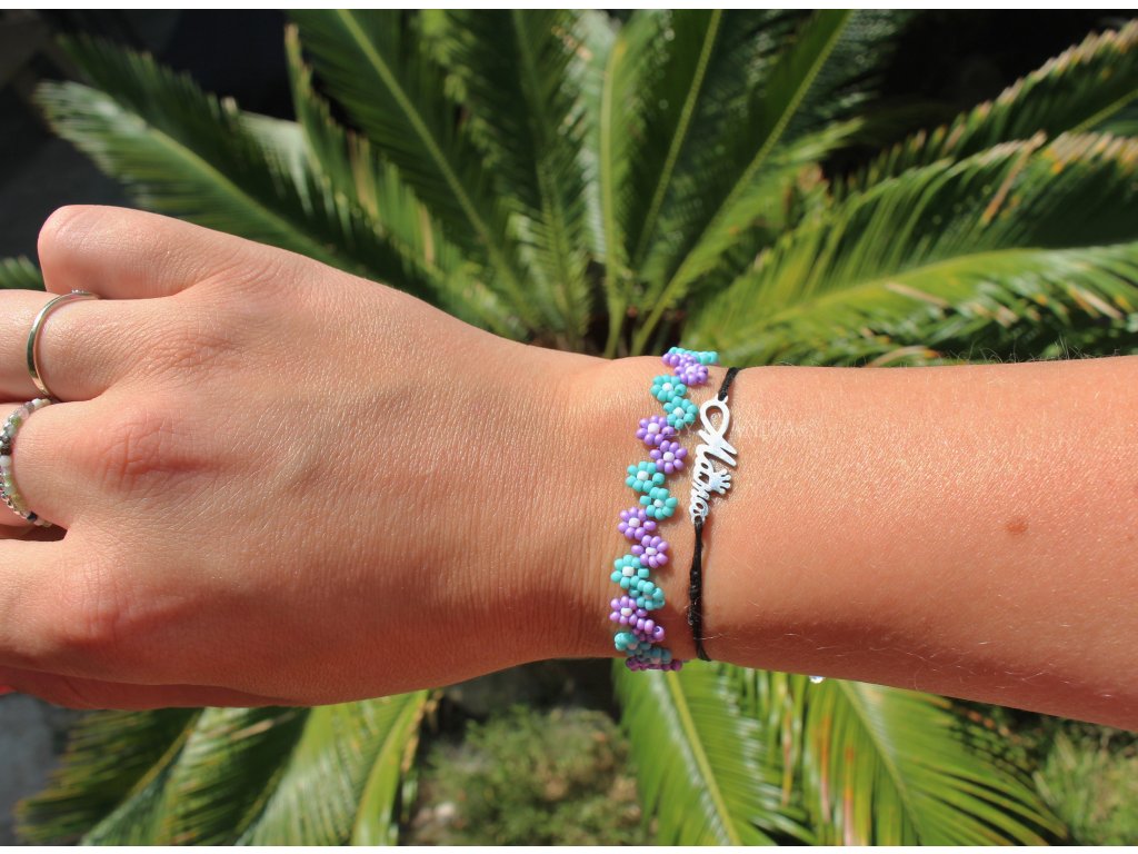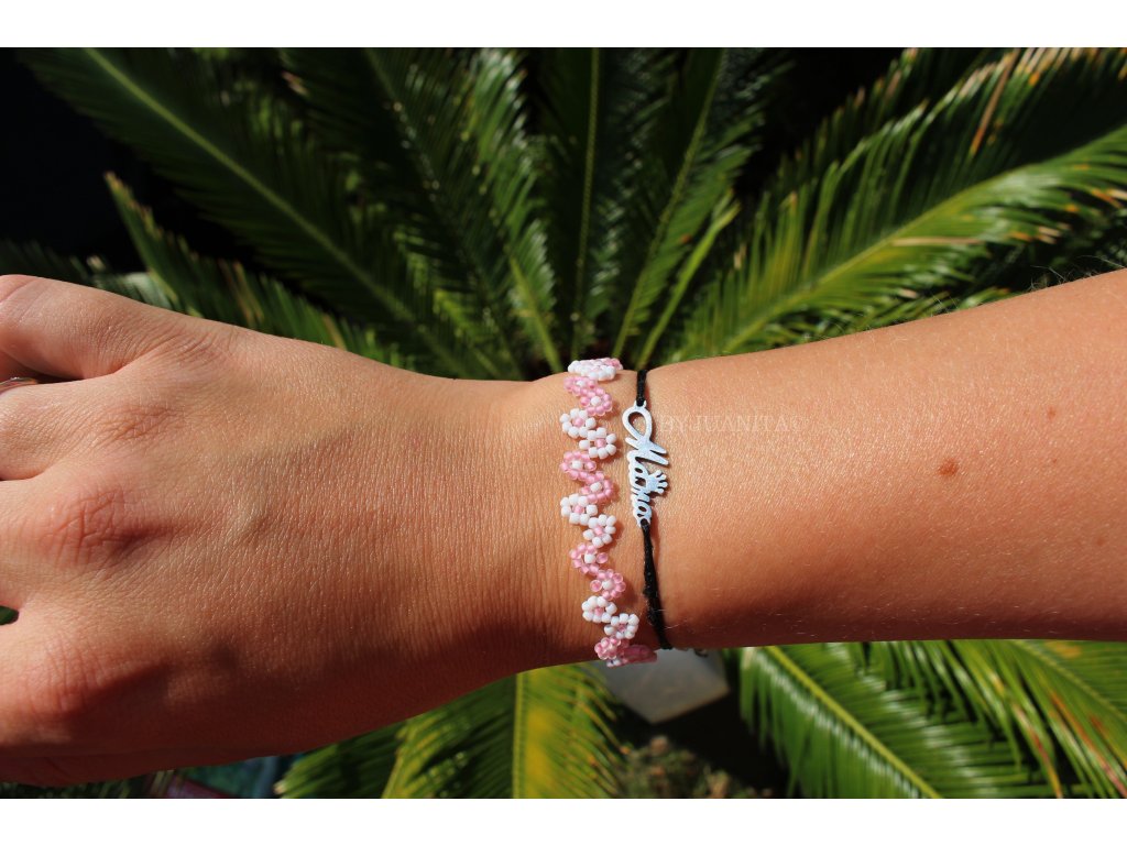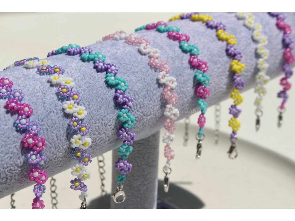 Sladký kytičkový náramek, ručně ušitý z nejkvalitnějších japonských korálků v 8 barevných variantách.
