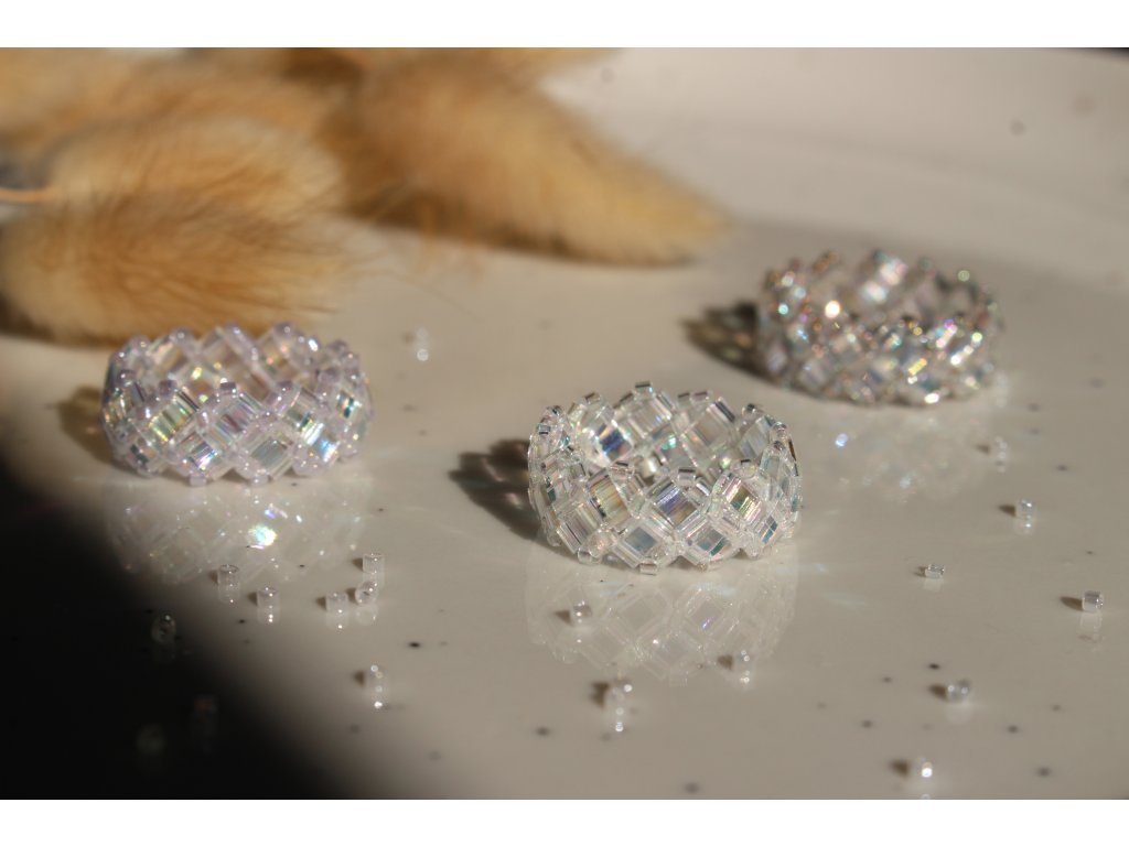 Pearly Crystal - miyuki tila prsten Miyuki Tila prsten Pearly Crystal – ručně šitý korálkový prstýnek
