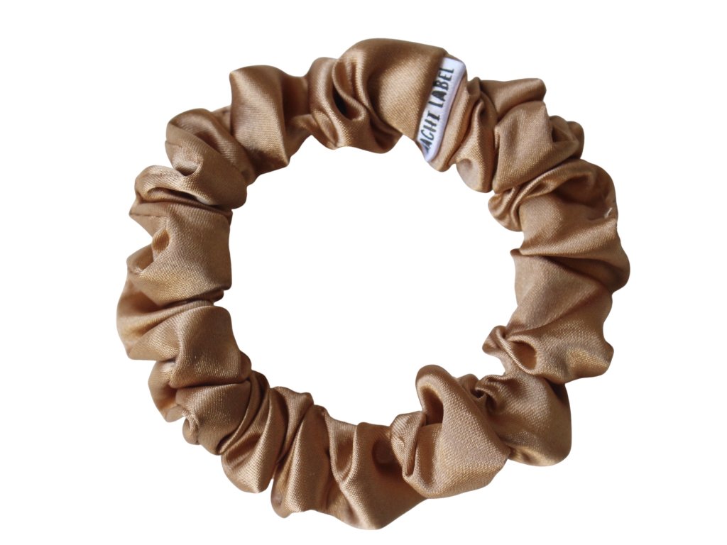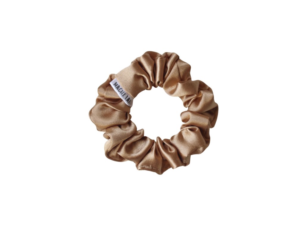 Hřejivá saténová scrunchie gumička v perníčkové barvě. Univerzální hnědý odstín, který ladí s každým outfitem. Ve 4 velikostech (XS, S, M, L) pro všechny délky vlasů. Šetrně drží vlasy bez poškození.