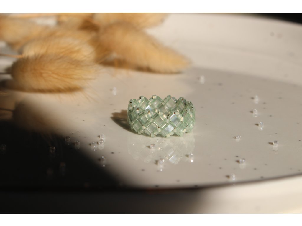 Pistaccio - miyuki tila prsten Pistaccio – Miyuki Tila prsten, ručně šitý korálkový prstýnek