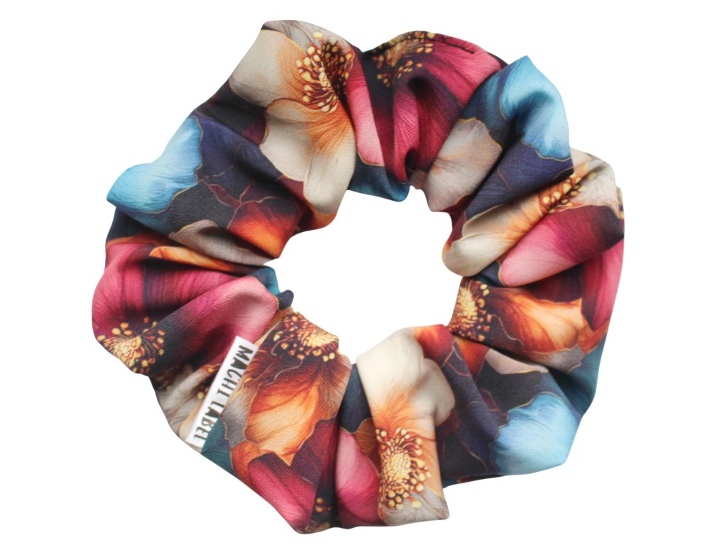 Luxusní saténová scrunchie s okouzlujícím květinovým vzorem Royal Garden. Ručně šitá v České republice z jemného saténu, který Vaše vlasy nešetrně netlačí ani netrhá. Umělecký doplněk plný barev a života, který dodá Vašemu účesu jedinečný styl a zároveň o něj pečuje.