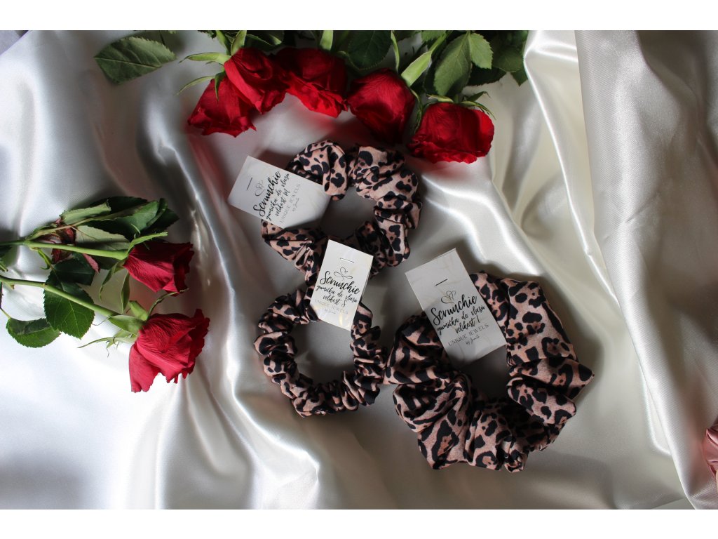 Scrunchie gumička z umělého hedvábí s nesmrtelným zvířecím vzorem Leopard!
