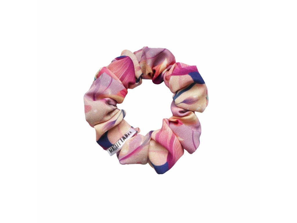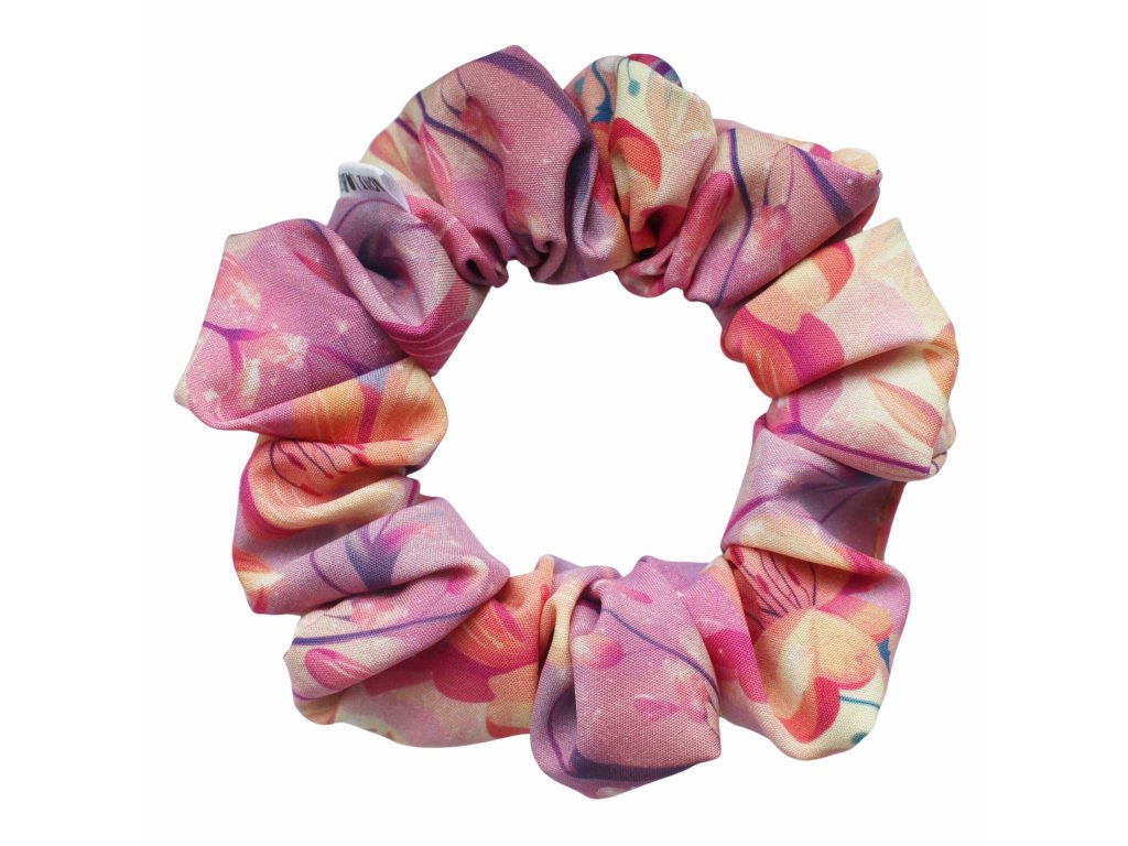 Tropical Sunset – Saténová scrunchie přináší nadýchaný komfort a tropický šarm do každého účesu. Jemný satén šetrně pevně drží vlasy, zatímco ručně malovaný vzor slunečnic a růží evokuje západ slunce na pláži. Univerzální velikost a pružný materiál zajišťují pohodlí po celý den. Dokonalý doplněk pro milovnice barev a přírodního stylu.