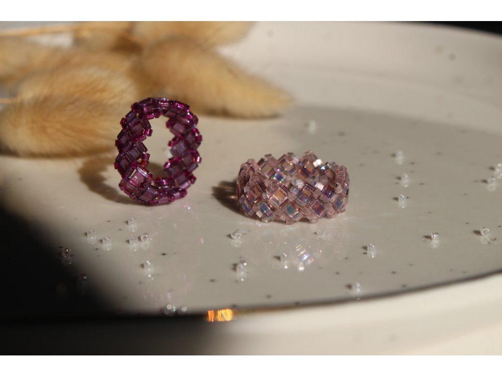 Ručně šitý Miyuki Tila prsten Violet ve dvou variantách — světlý a tmavý odstín fialové. Jemný design z prémiových japonských korálků, pohodlný na nošení.